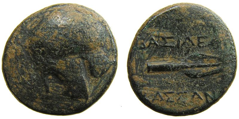 History: The spearhead on the reverse refers to the "spear-won land", one of the most important theoretical schemes regarding war and conquest in Hellenistic times.