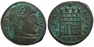 Constantine I; AE Follis, Arelate; camp gate