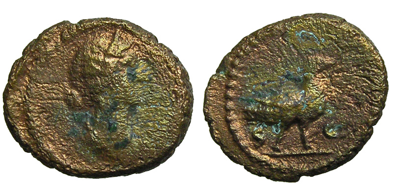 The smallest denominations of Roman bronze coinage (semis and quadrans) seldom bore the image of the emperor.