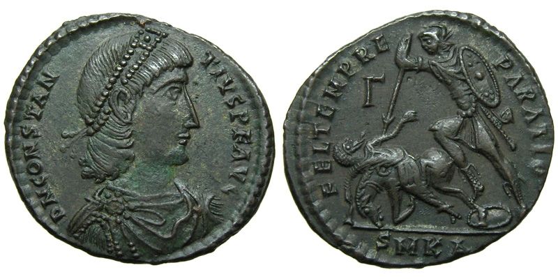 History: Just a couple o months before his death in 361 AD Constantius II took his third wife Faustina with whom he had his only (posthumous) child Flavia Maxima Constantia - the wife of a future emperor Gratian.