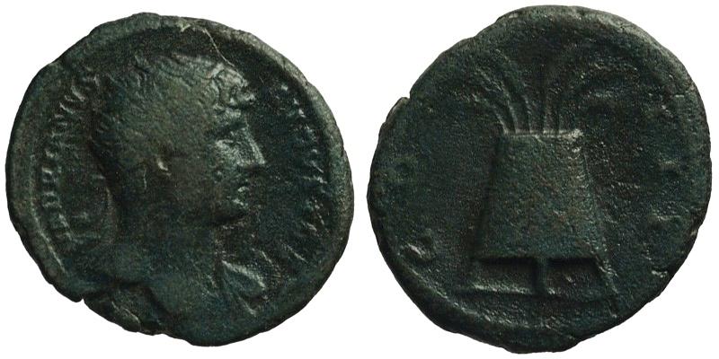 Hadrian (117 - 138 AD). AE Semis, Rome mint 125-128 AD. HADRIANVS AVGVSTVS; radiate and draped bust right / COS III; modius with six grain ears.