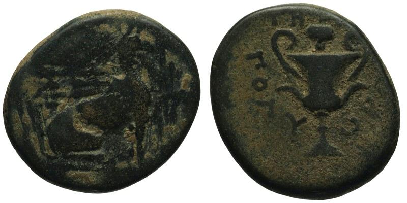 Ionia, Teos, 370 - 330 BC. Polythrous, magistrate. Griffin seated right, forepaw raised / THIΩN; grape bunch over kantharos, ΠOΛYΘPOYΣ around below.