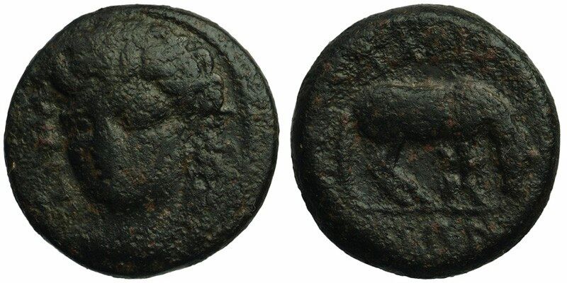 Thessaly, Larissa; nymph facing/horse prepairing to lie down