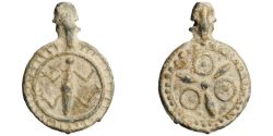 Roman PB Tessera; three Graces/modius with 3 grain ears