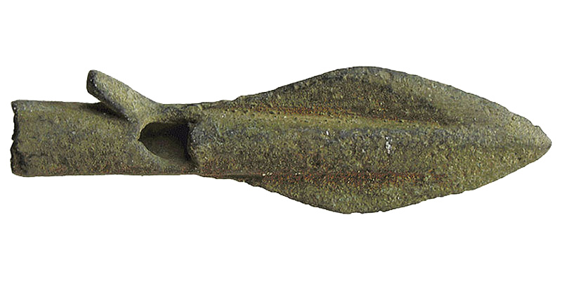 Greek bronze arrow head, 5th - 4th century BC, bi-lobate (2-bladed) and barbed type.