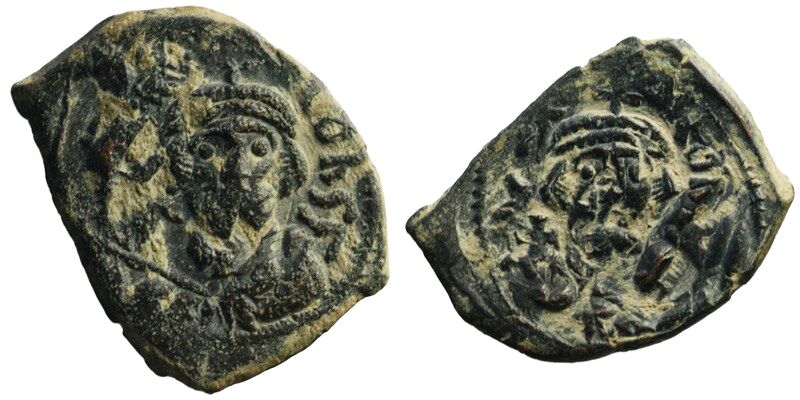Constans II (641 - 668 AD). AE Follis, Constantinople mint. IҺPER COҺS; Bust of Constans II facing, beardless, wearing crown and chlamys, holding globus cruciger in his right hand / same as obverse