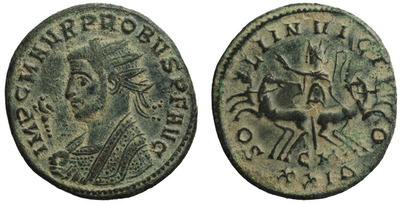 Probus; AE Antoninianus, Cyzicus; Sol in quadriga