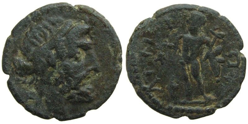 Thrace, Ainos, 2nd - 1st century BC. Diademed head of Poseidon right / AINIΩΝ; Hermes standing left, holding kerykeion and purse over lighted altar.