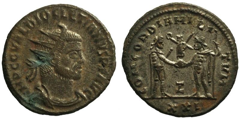 Diocletian; silvered Antoninianus; emperor and Jupiter