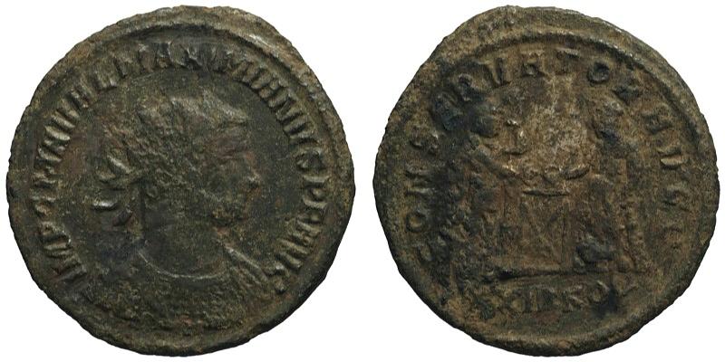 Maximian; AE Radiate, Siscia; emperor with Hercules