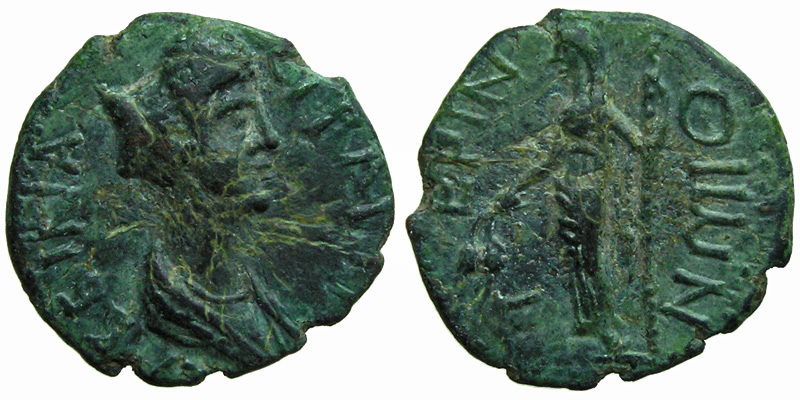 Description: Thrace, Perinthos, Sabina (119 - 137 AD). CABEINA CEBACTH; draped bust right / ΠEΡINΘIWN; Demeter standing left, holding grain ears and torch.