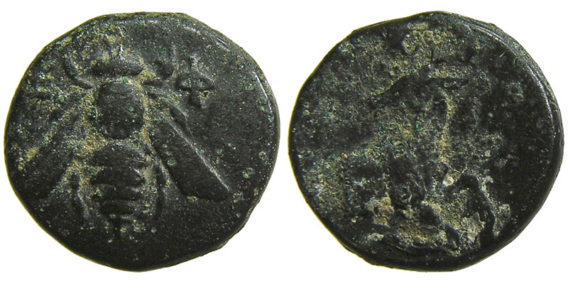Ionia, Ephesos, 390 - 320 BC. E-Φ; bee with straight wings / Forepart of stag right, head turned left.