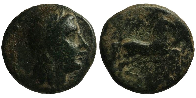 Description: Ionia, Kolophon, 320 - 294 BC. Laureate head of Apollo right / Horse walking right.